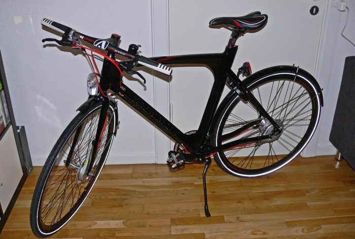 | Flintholm station. Cykelparkerigen ud mod Flintholm Allé / bus holdeplads. Cyklen var parkeret i midterste række lige overfor døren til den aflåste cykelparkering. Stjålet i tidsrummet 02/12-11 kl. 08.15 og 03/12-11 kl. 01.00. |