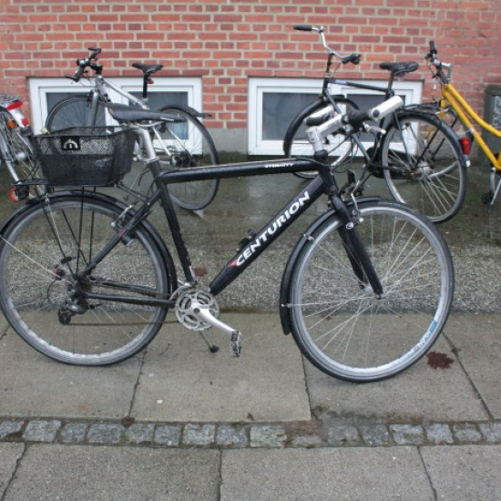 Stod parkeret foran opgangen til adressen. Var (så vidt vides) låst med alm. fastmonteret lås. |