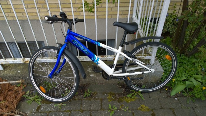 | Cyklen var efterladt i en hæk på Solvej i Ølstykke. Nu har den stået der i nogle dage, så jeg har flyttet den til vores indkørsel, hvor den kan afhentes af ejeren. Den er ulåst. | |