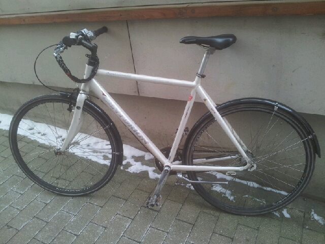 | Stjålet foran opgangen. Cyklen var låst med en kædelås, men ikke låst fast til noget. | |