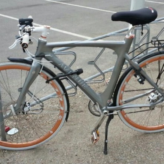 Foran Døgnnetto og Fitness World på Tomsgårdsvej ved cykelparkeringen. |