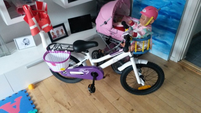 | Cyklen stod låst fast til cykelstativet ude foran børnehaven Kildehuset i Taastrup | |
