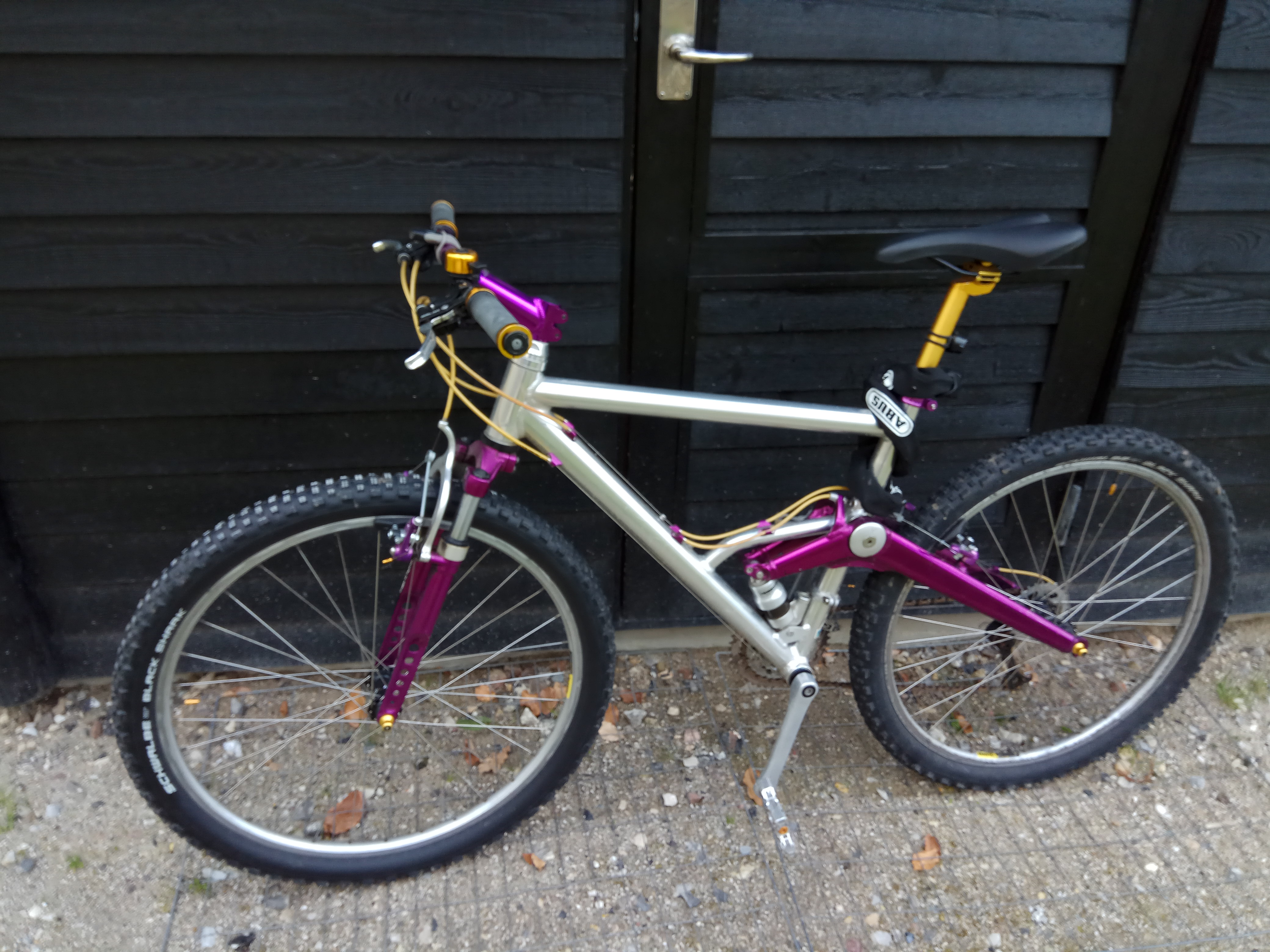 Silver/Purple Aluminium MTB with gold details.
