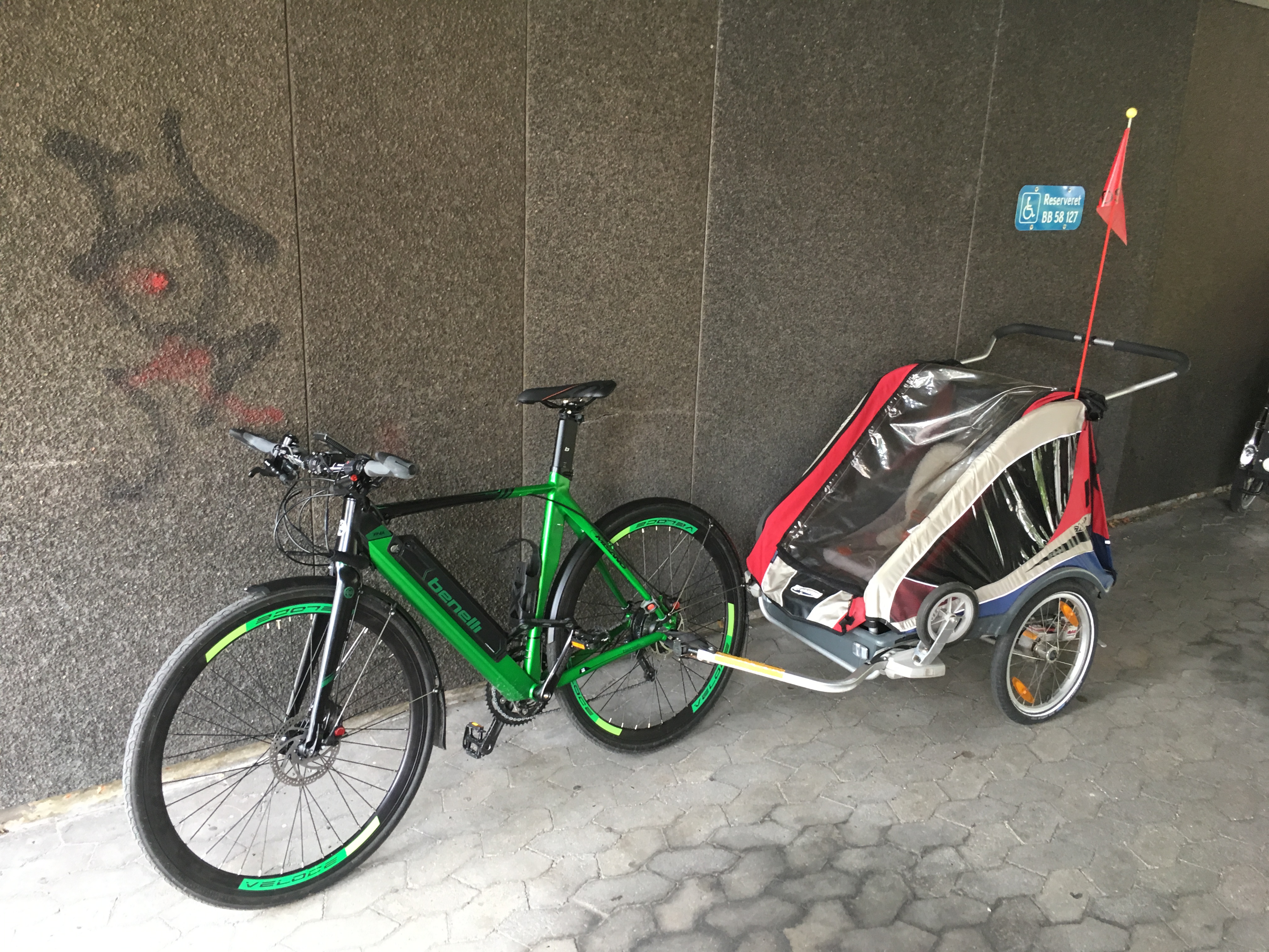 | Cykelparkeringsplads foran/under lejligheds bygning, Bagved Østerbro centeret. | |