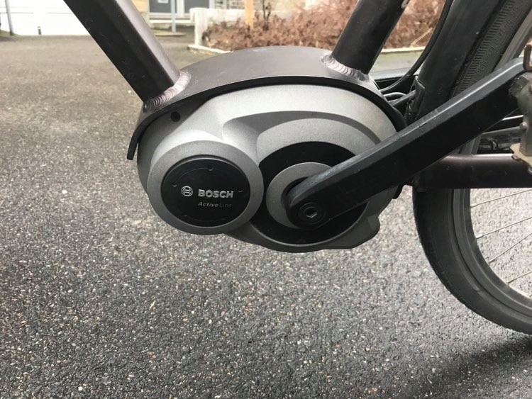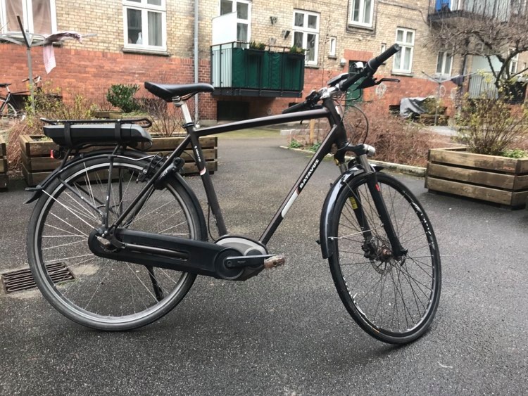 Sort Batavus El-Cykel I herre model fra 2015. Grå kontrol panel ved venstre håndtag og grå ydre skjold på bosch motoren.