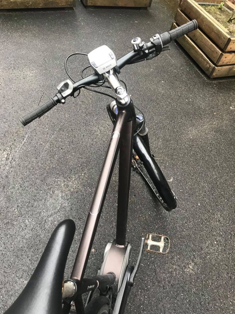 Der er enten stadig, eller mærker efter, sølv-gråt gaffatape på venstre pedal og venstre baggaffel.