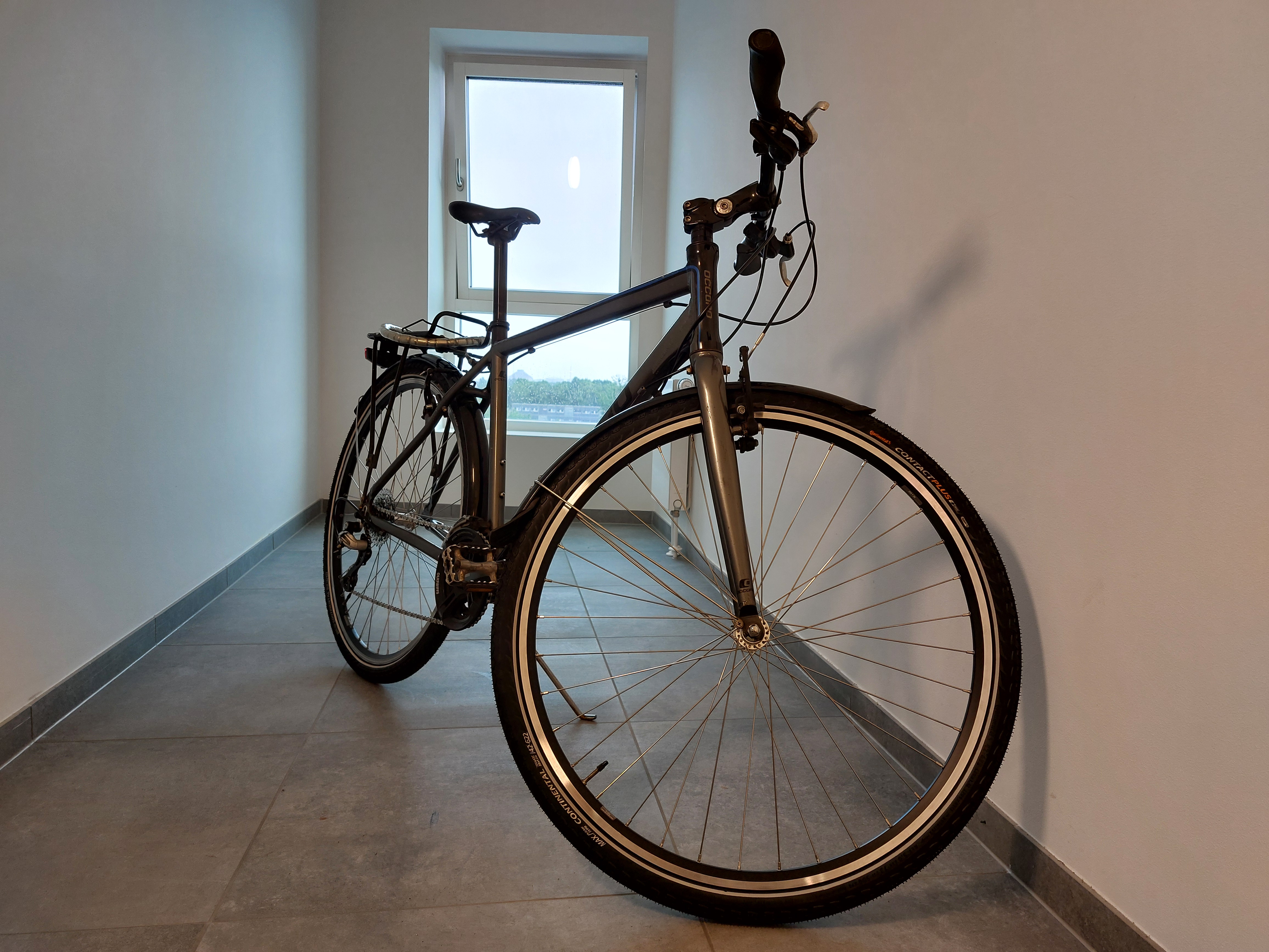 Cyklen er ikke ny, har sort Occano stel og en mærkbar rusten metalstøtte. Sadlen og bagagebæreren er tidligere blevet udsat for hærværk, mens delene på styret simpelthen er gamle. Cyklen har dog fået nye hjul og helt nye kontinentaldæk.