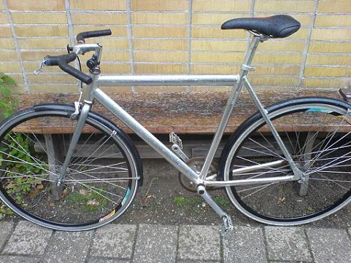 Cyklen har INGEN klistermærker. Sølv med sorte skærme. Klinge foran er 53tands (ikke på billed), en smule større end klinge skærmen. Højde ca. 54cm. uden gear